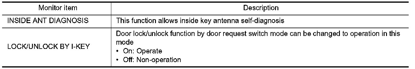 INTELLIGENT KEY : CONSULT-III Function (BCM - INTELLIGENT KEY)