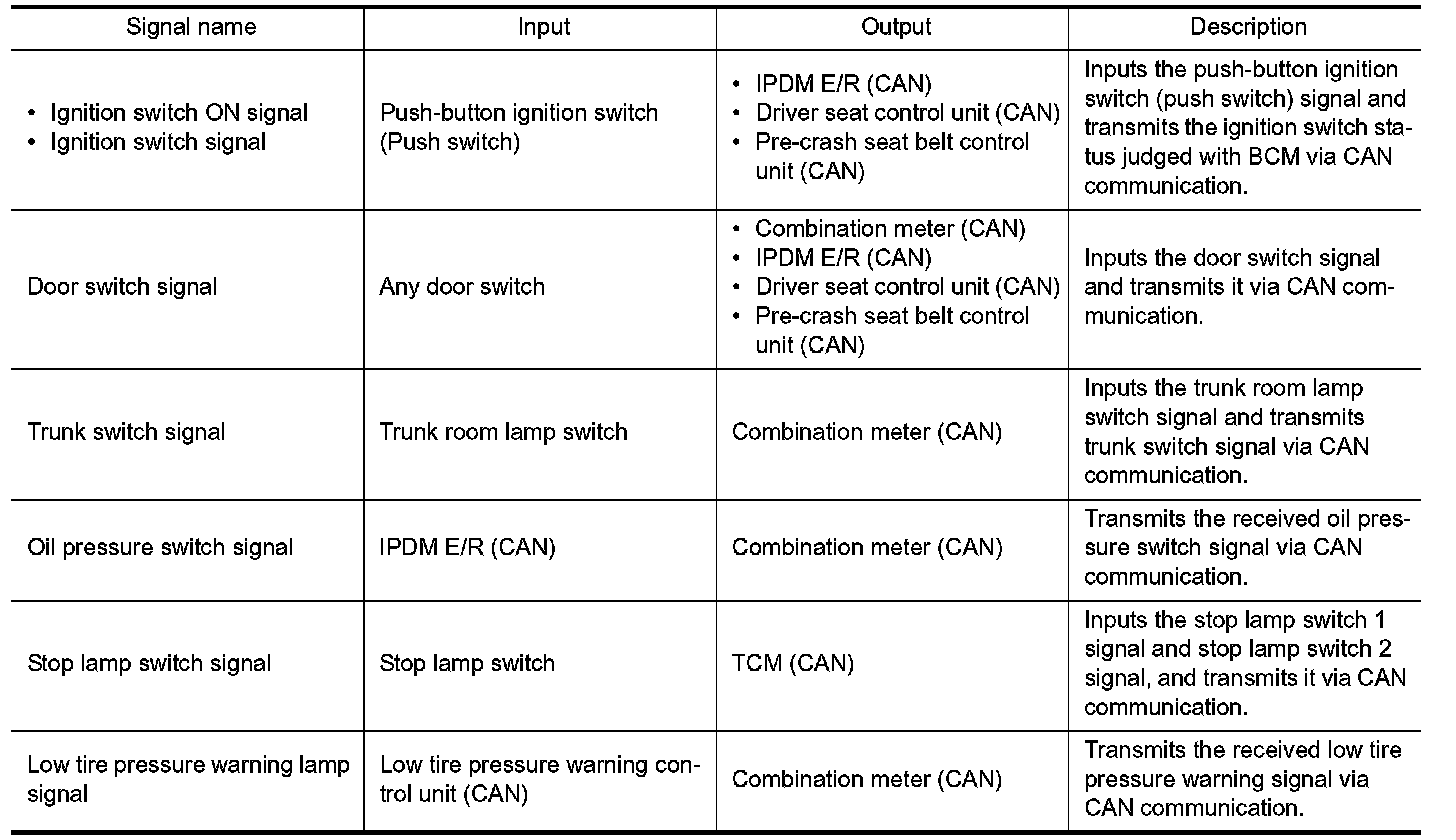 Signal transmission function list