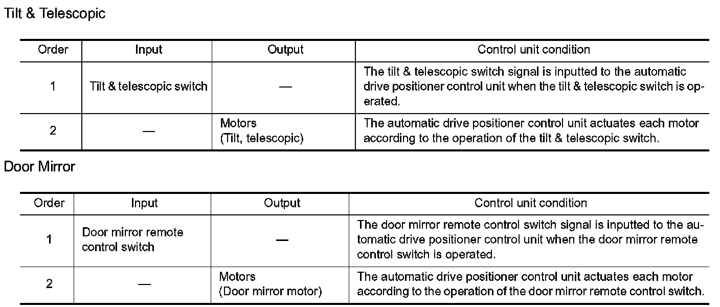 3. The driver seat, steering column or door mirror operates according to the operation of each switch.