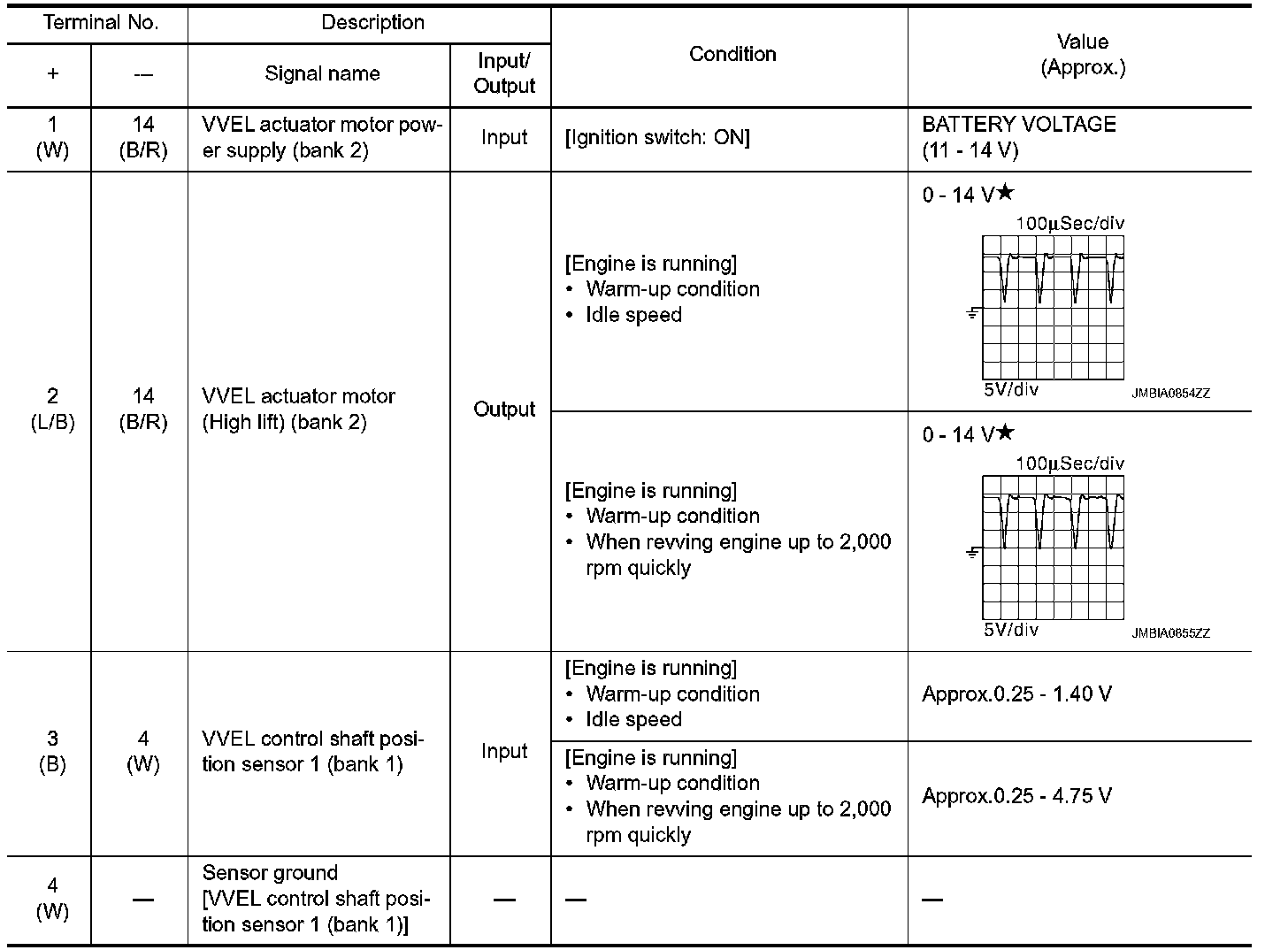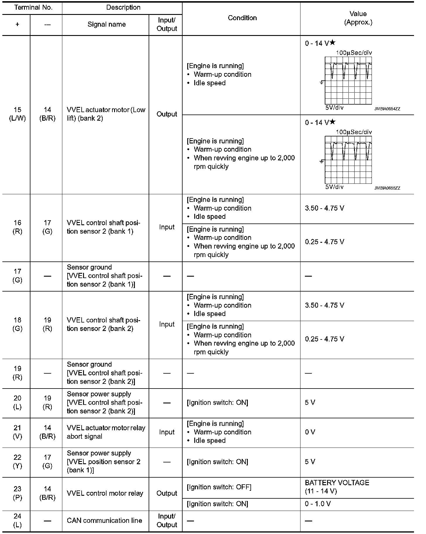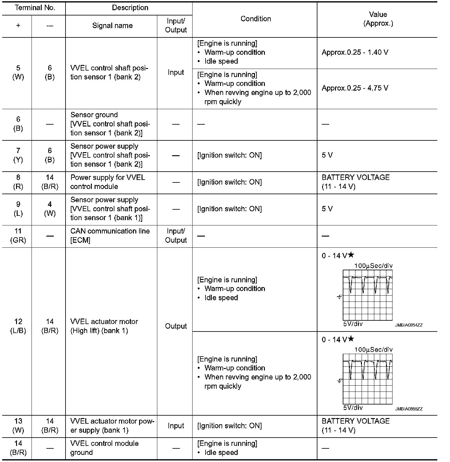 - Specification data are reference values and are measured between each terminal and ground.