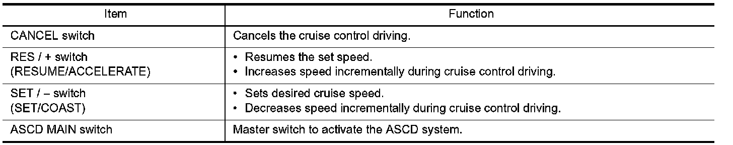 AUTOMATIC SPEED CONTROL DEVICE (ASCD) AUTOMATIC SPEED CONTROL DEVICE (ASCD) : Switch Name and Function