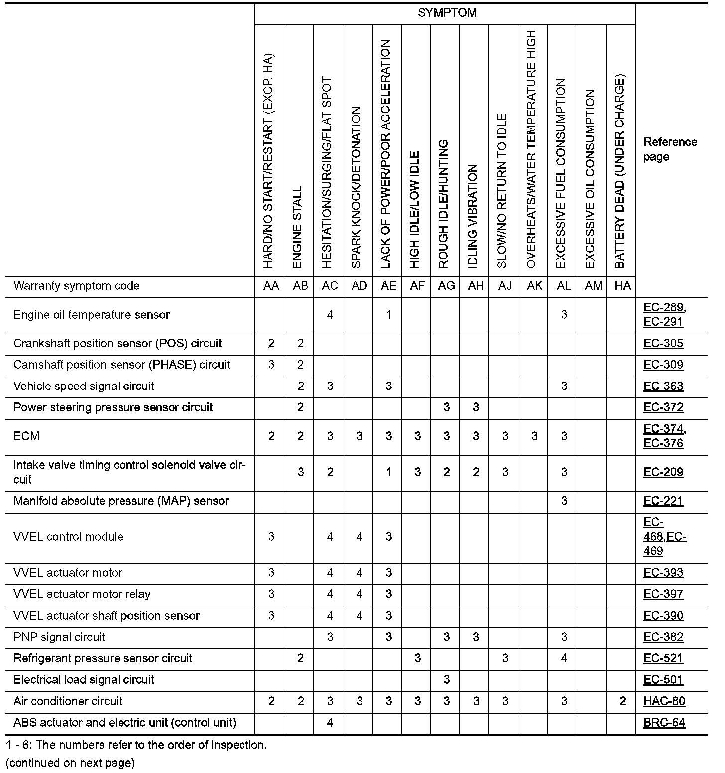 ENGINE CONTROL SYSTEM SYMPTOMS