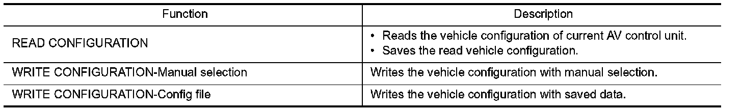 - Since vehicle specifications are not included in the AV control unit after replacement, it is required to write vehicle specifications with CONSULT-III.