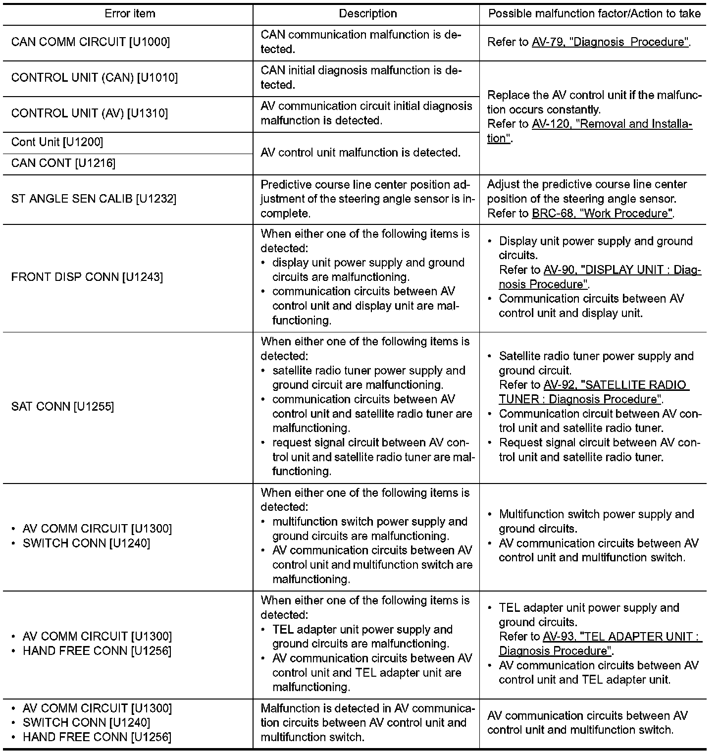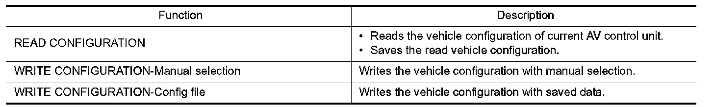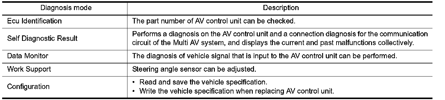 CONSULT-III performs the following functions via the communication with the AV control unit.