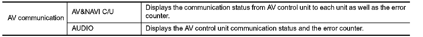 When "AV communication" of "CAN DIAG Support Monitor" is selected, the following function will be performed.