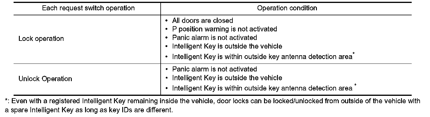 If the following conditions are satisfied, door lock/unlock operation is performed if the request switch is operated.