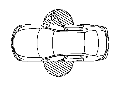 The outside key antenna detection area of door lock/unlock function is in the range of approximately 80 cm (31.50 in) surrounding the driver, passenger door handles (1). However, this operating range depends on the ambient conditions.