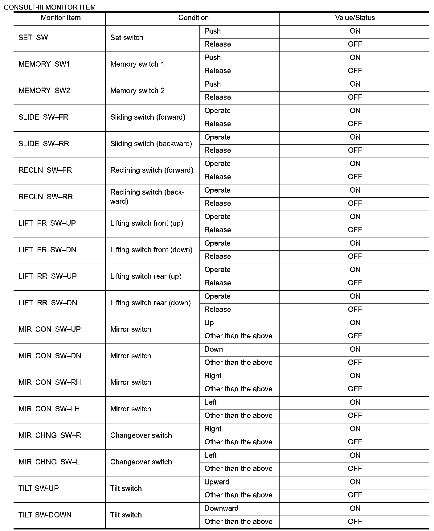 Pinout Values and Diagnostic Parameters