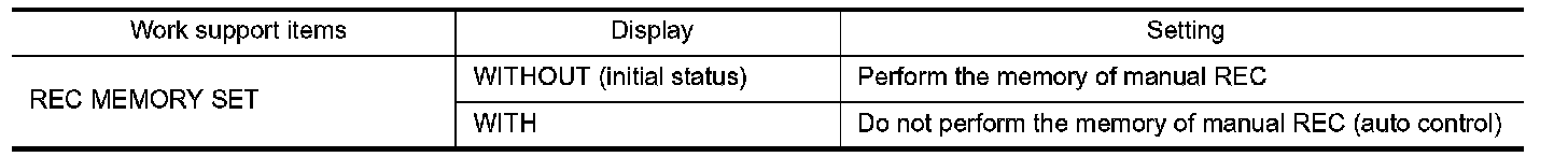 - If the ignition switch is turned to the OFF position while the REC indicator is set to ON (recirculation), "Perform the memory" or "Do not perform the memory" of REC indicator ON (recirculation) condition can be selected.