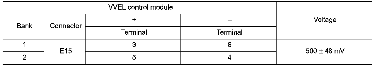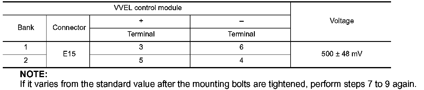 10. Reconfirm that the output voltage of VVEL control shaft position sensor is within the standard value.