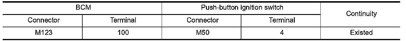 2. Check continuity between BCM harness connector and push-button ignition switch harness connector.