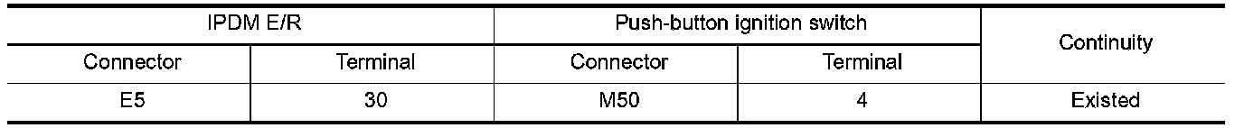 2. Check continuity between IPDM E/R harness connector and push-button ignition switch harness connector.