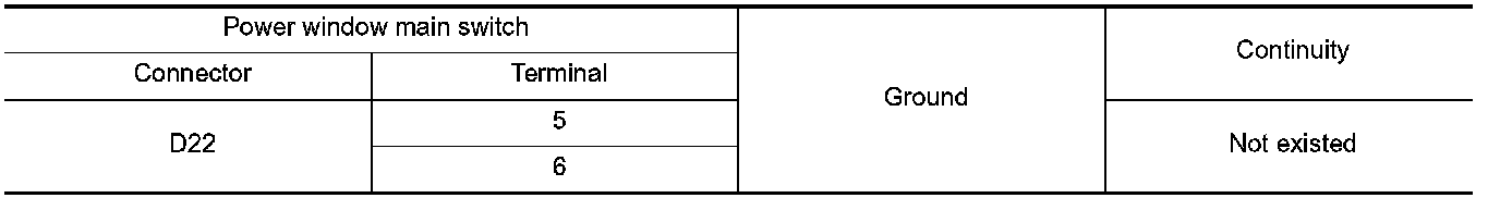 4. Check continuity between power window main switch harness connector and ground.