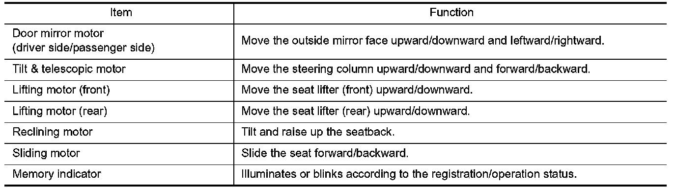 MEMORY FUNCTION : Component Description