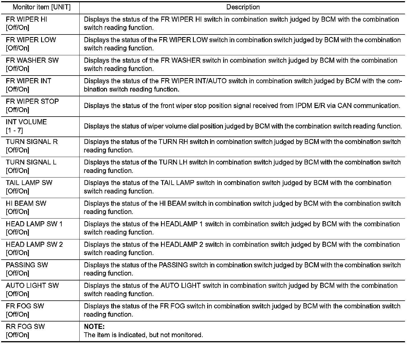 COMB SW : CONSULT-III Function (BCM - COMB SW)
