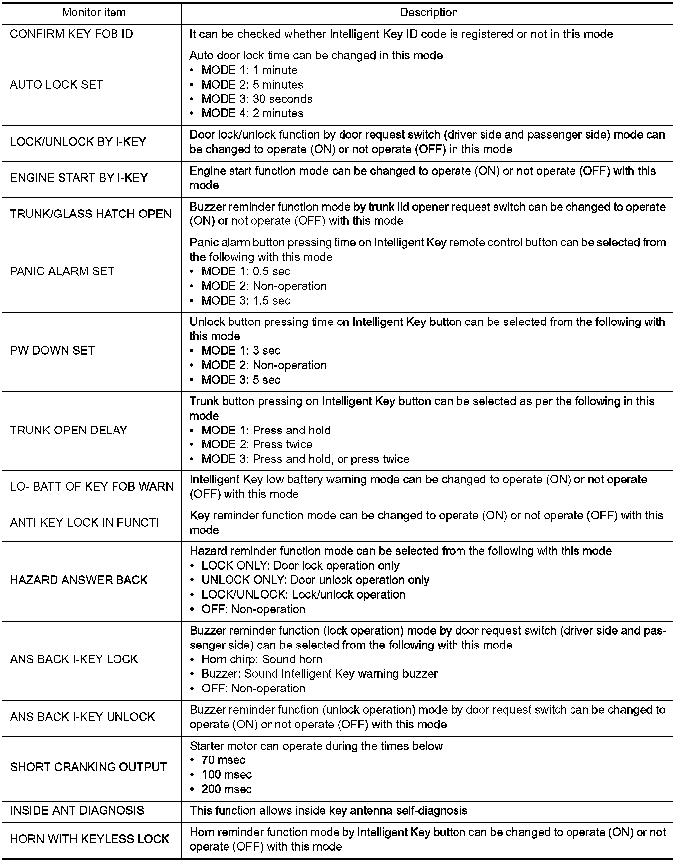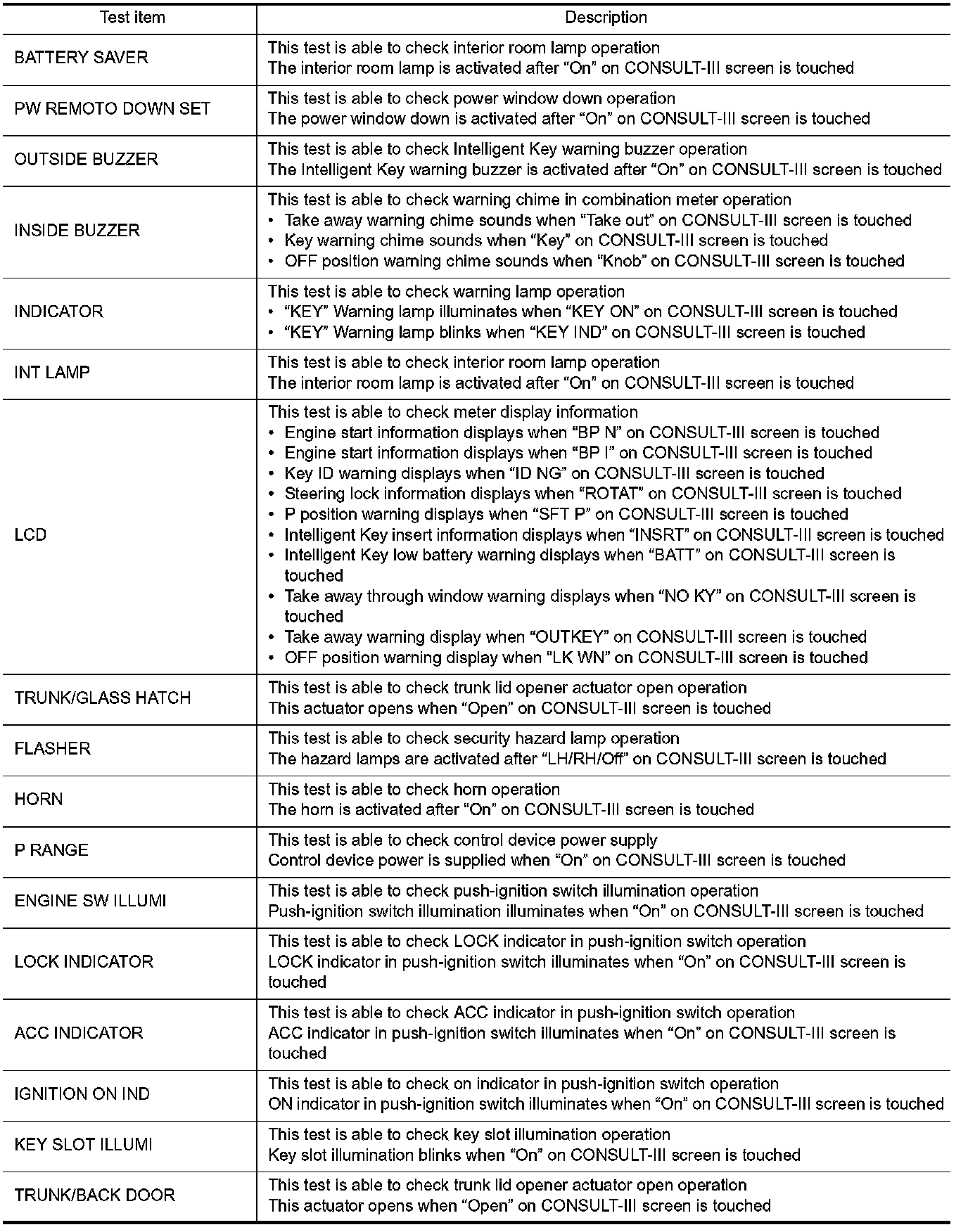 INTELLIGENT KEY : CONSULT-III Function (BCM - INTELLIGENT KEY)