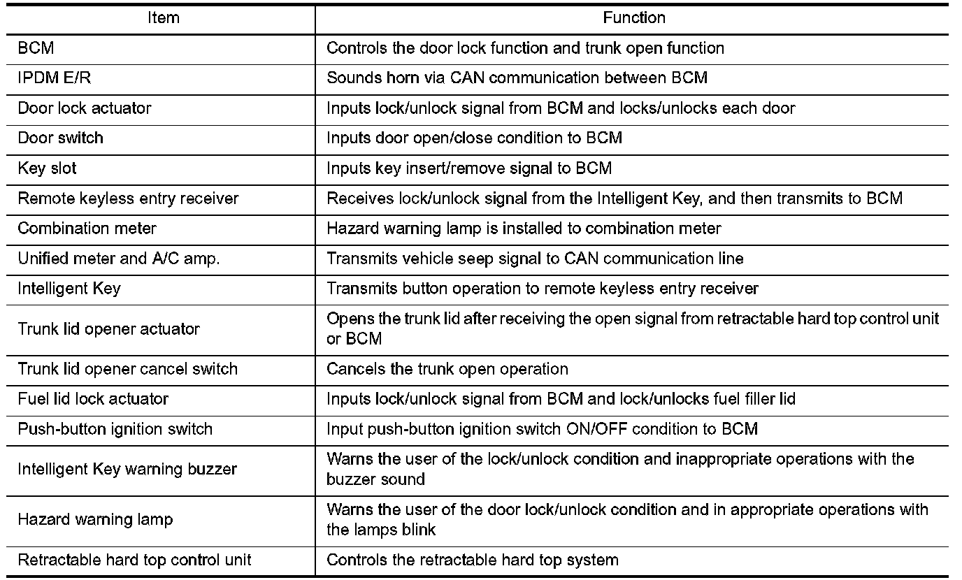 REMOTE KEYLESS ENTRY FUNCTION : Component Description