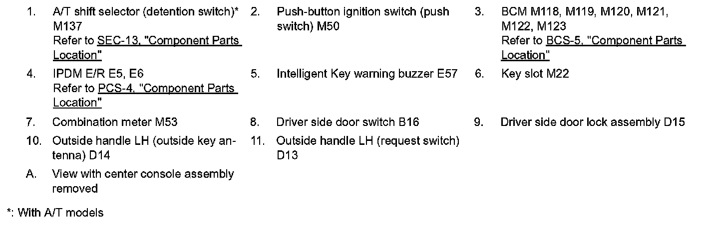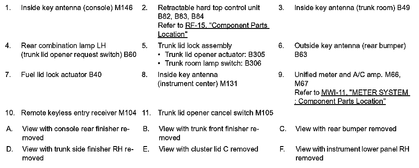 WARNING FUNCTION : Component Parts Location