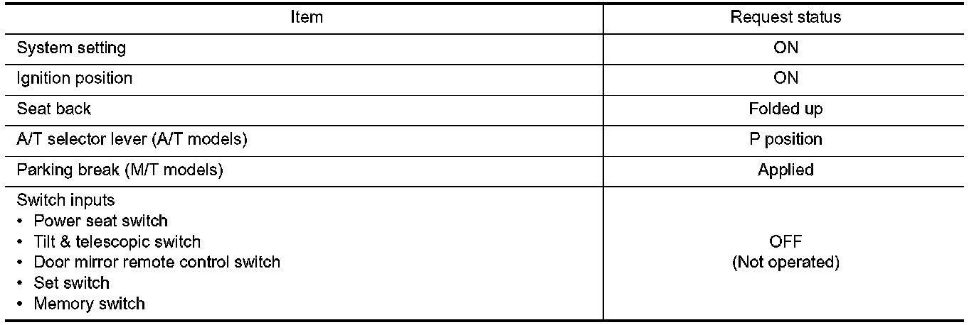 Satisfy all of the following items. The seat synchronization function is not performed if these items are not satisfied.