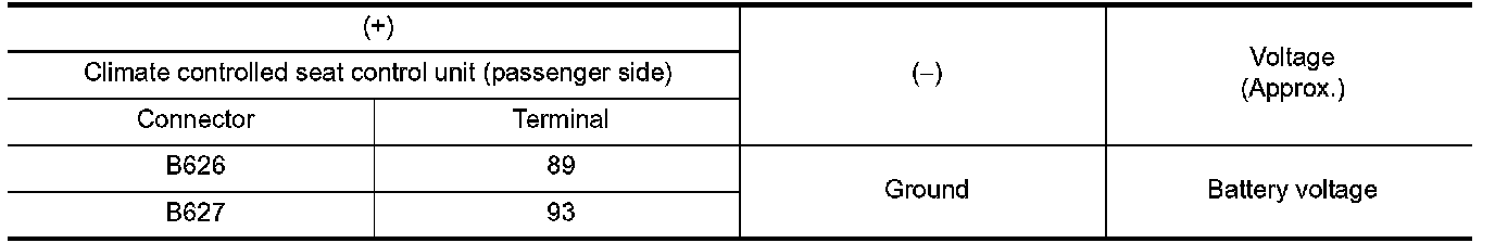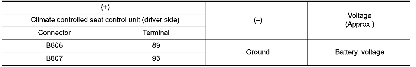 4.Check voltage between climate controlled seat control unit (driver side) harness connector and ground.