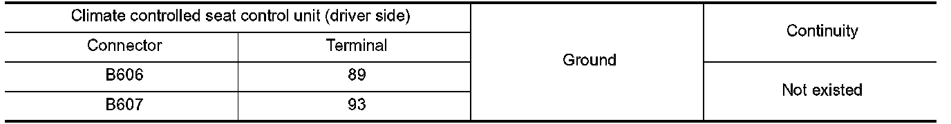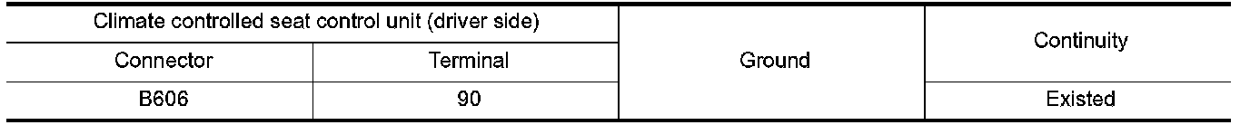 4.Check continuity between climate controlled seat control unit (driver side) harness connector and ground.