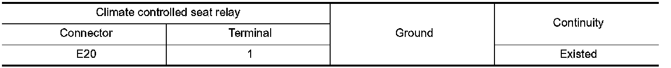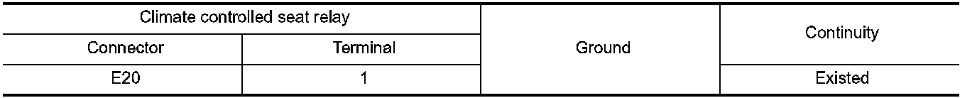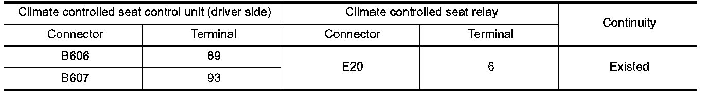 3.Check continuity between climate controlled seat control unit (driver side) harness connector and climate controlled seat relay harness connector.
