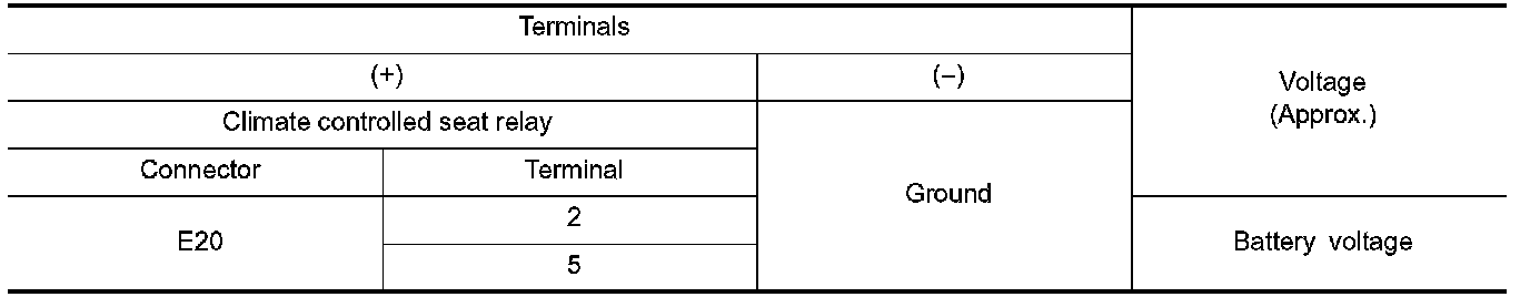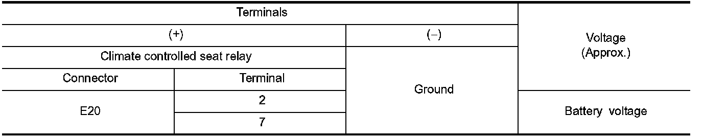 2.Check voltage between climate controlled seat relay harness connector and ground.