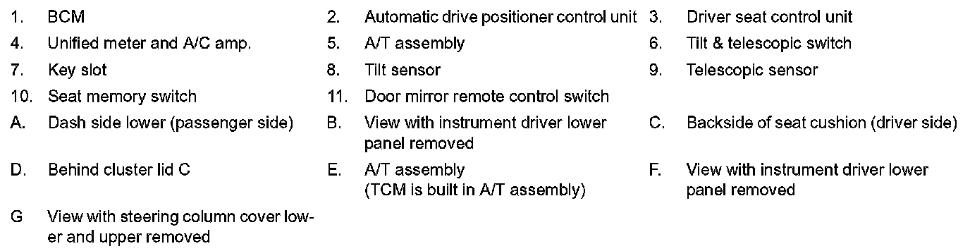 MEMORY FUNCTION : Component Parts Location