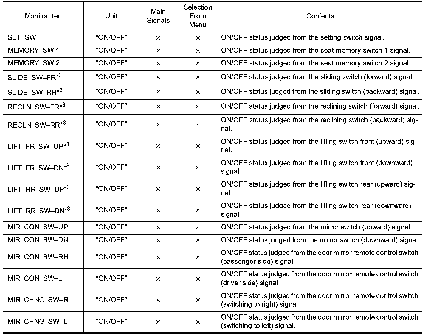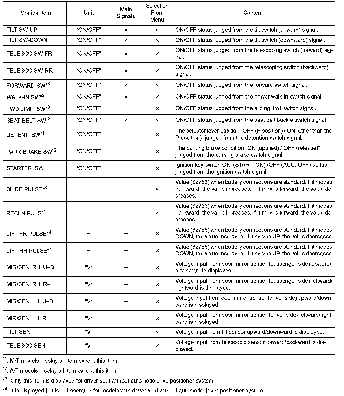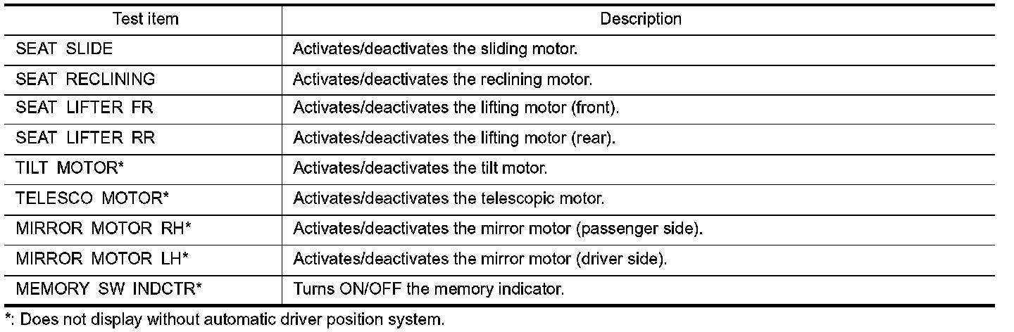 DIAGNOSIS SYSTEM (DRIVER SEAT C/U)