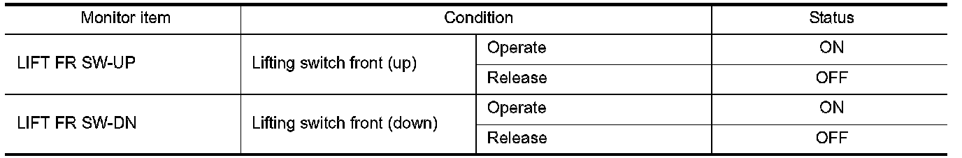 3.Check lifting switch (front) signal under the following conditions.