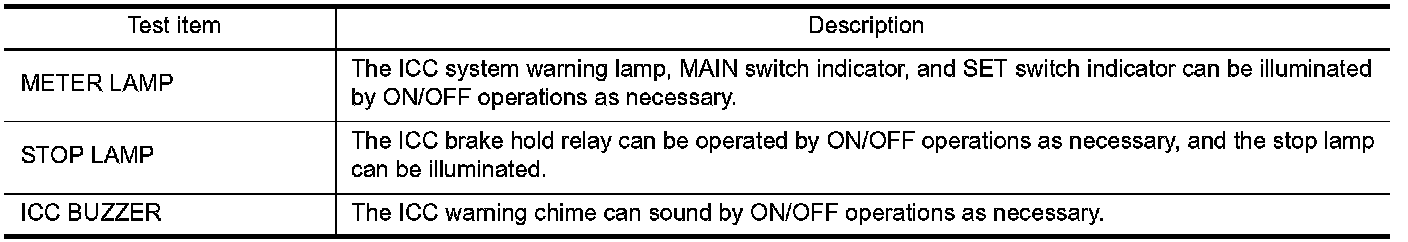 - The "Active Test" cannot be performed when the ICC system warning lamp is illuminated.