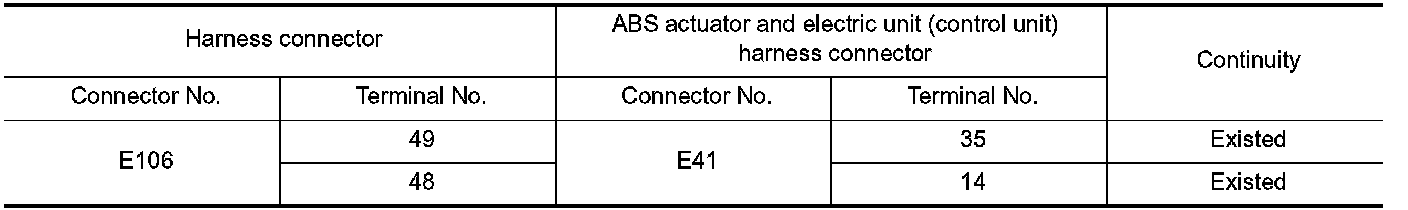 NO- Repair the main line between the harness connector E106 and the ABS actuator and electric unit (control unit).