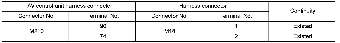 2.Check the continuity between the AV control unit harness connector and the harness connector.