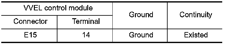 2.Check the continuity between VVEL control module harness connector and ground.