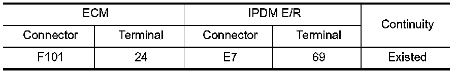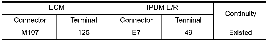 3.Check the continuity between ECM harness connector and IPDM E/R harness connector.