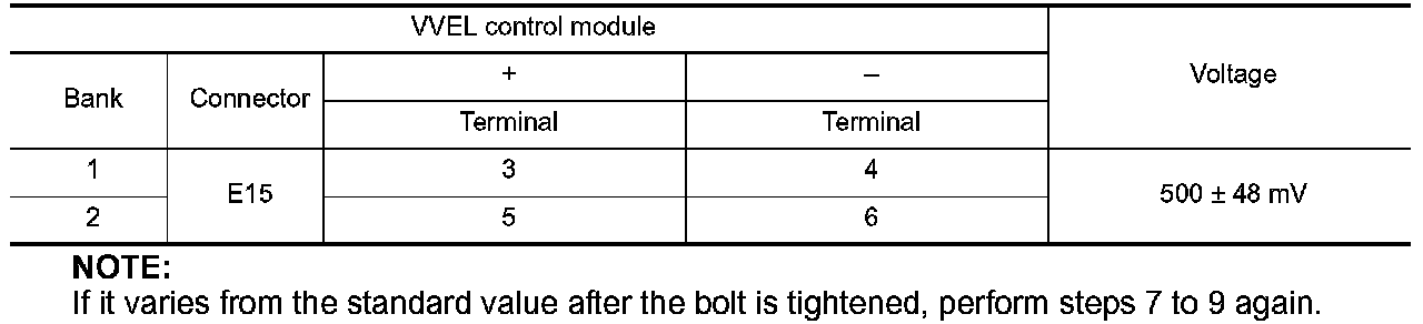 10.Reconfirm that the output voltage of VVEL control shaft position sensor is within the standard value.