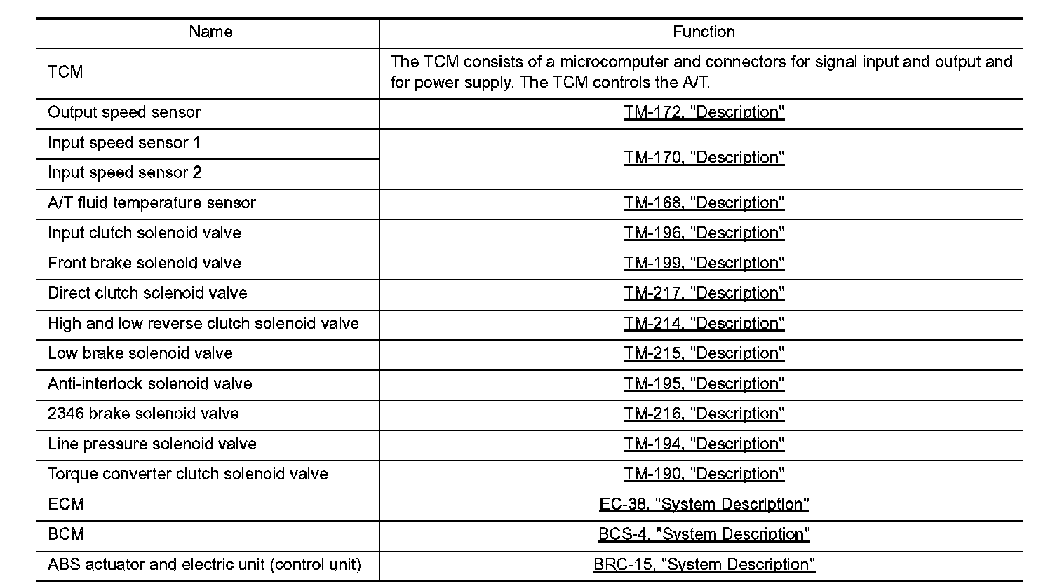 ASC (ADAPTIVE SHIFT CONTROL) : Component Description