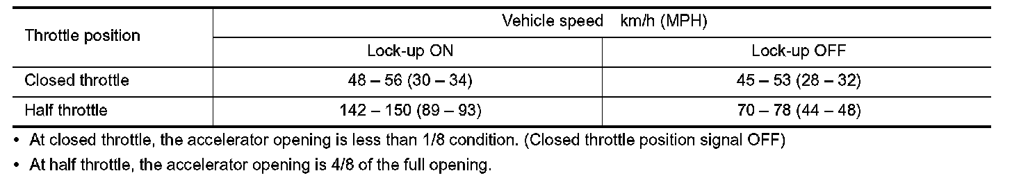 Vehicle Speed at Which Lock-up Occurs/Releases