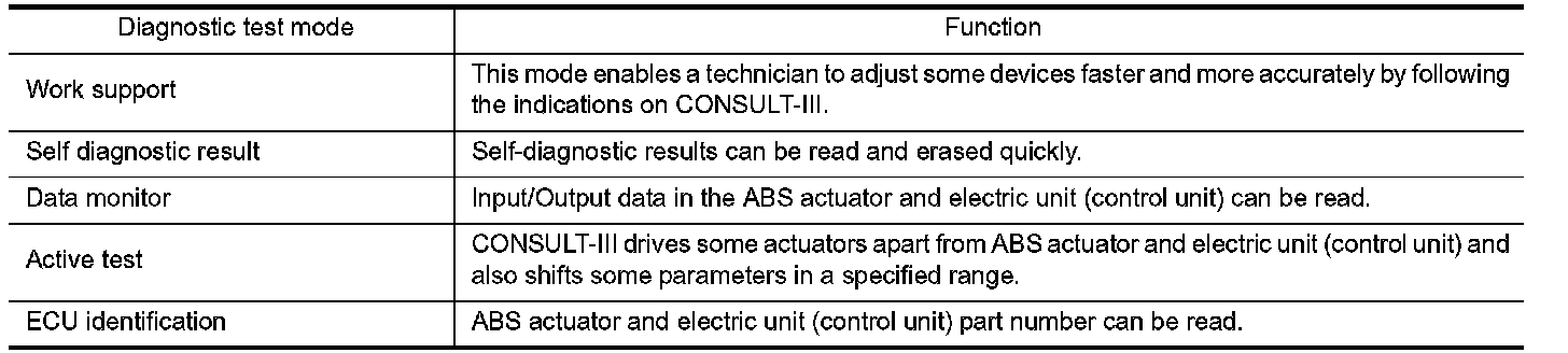 CONSULT-III can display each diagnostic item using the diagnostic test modes shown following.