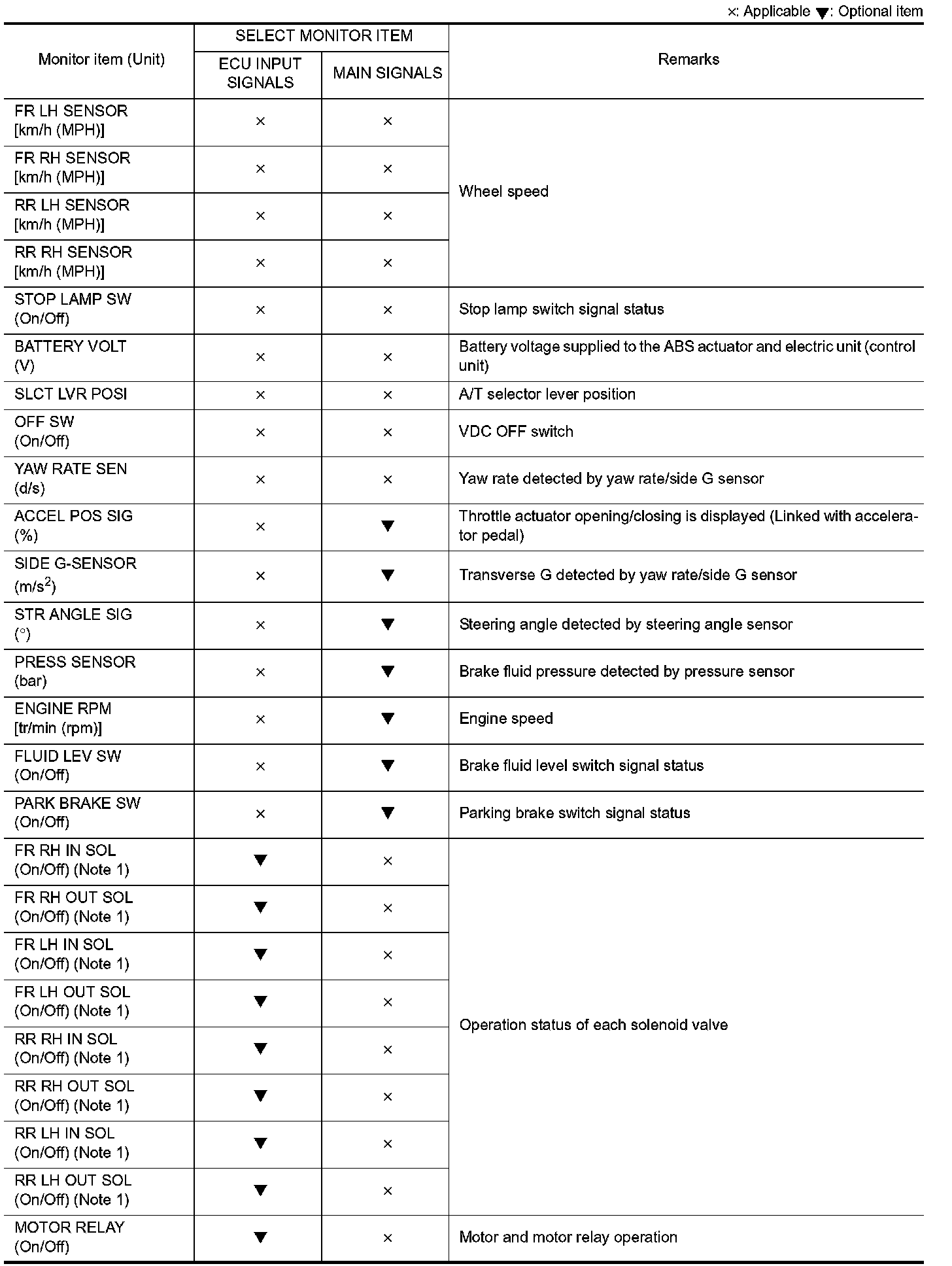 �: Applicable : Optional item