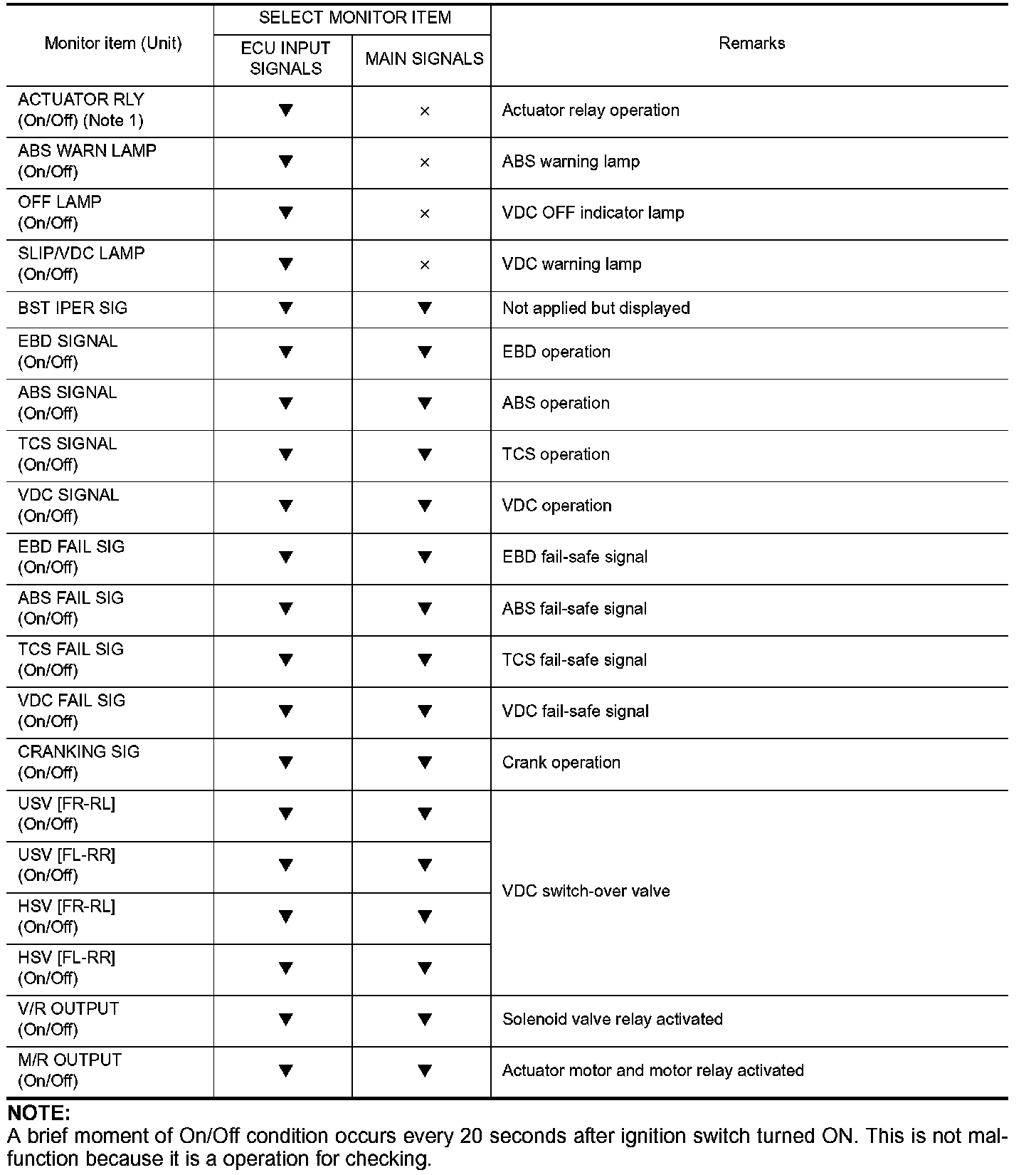 A brief moment of On/Off condition occurs every 20 seconds after ignition switch turned ON. This is not malfunction because it is a operation for checking.
