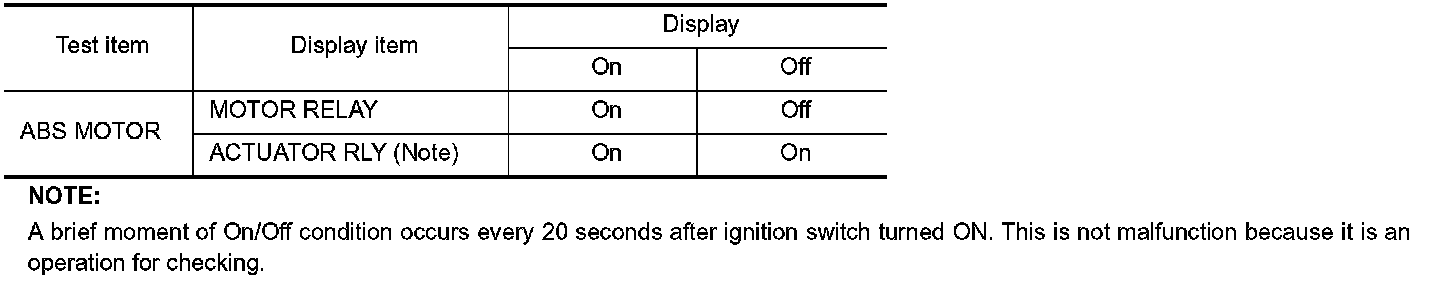 - When active test is performed while depressing the pedal, the pedal depression amount will change. This is normal. (Only solenoid valve and ABS motor.)