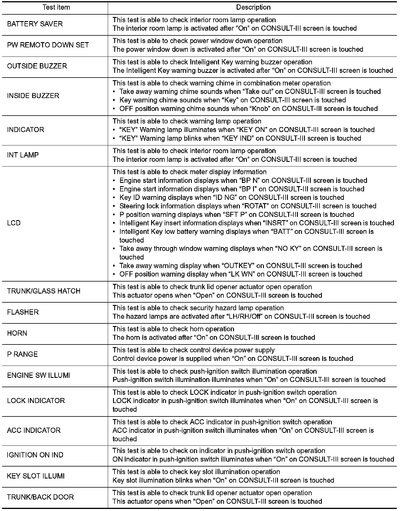 INTELLIGENT KEY : CONSULT-III Function (