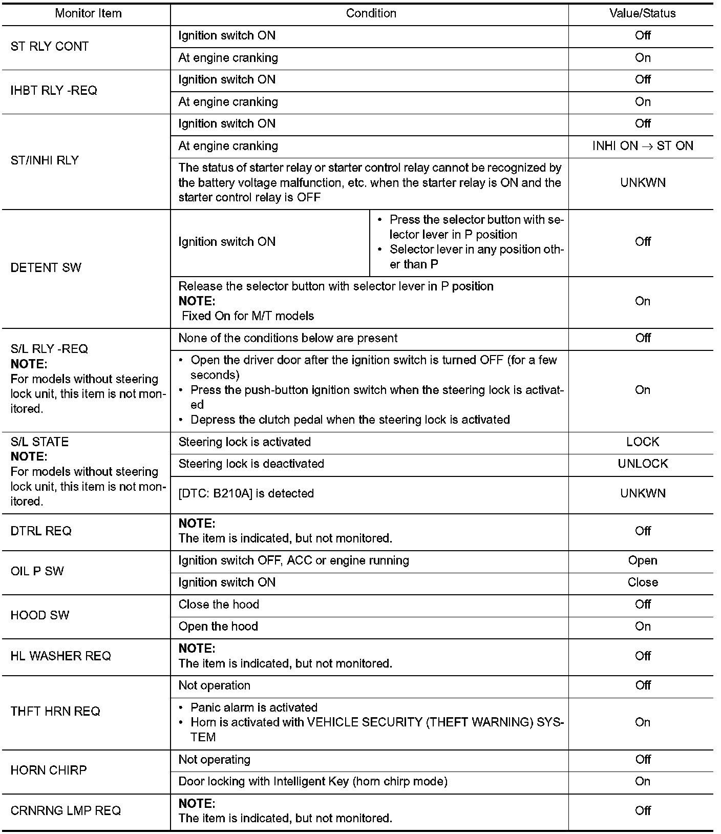*: Models with steering lock unit