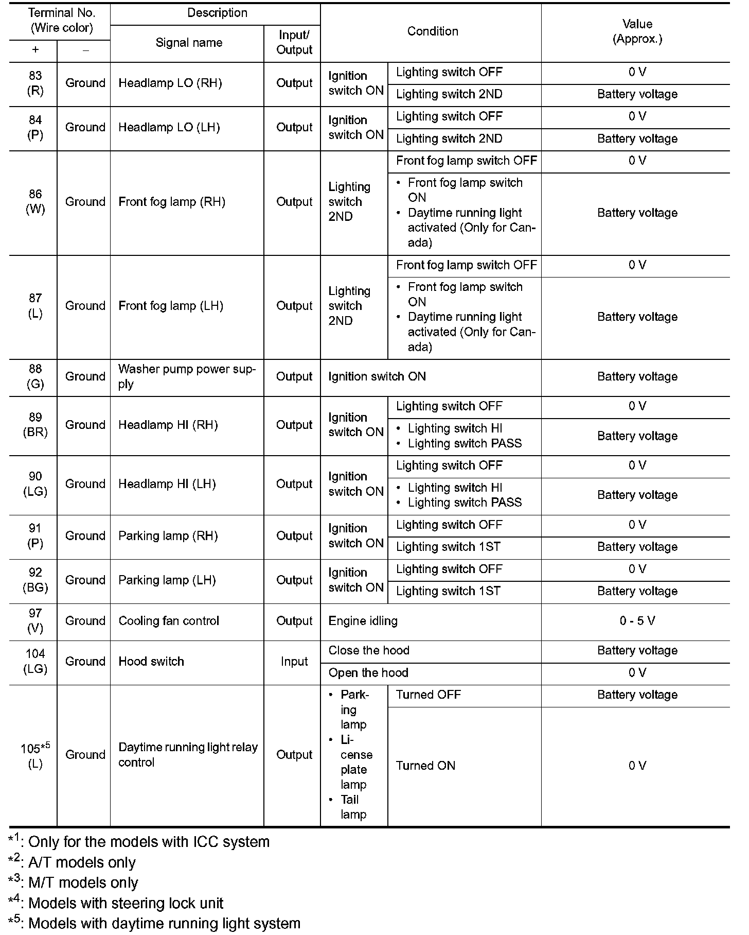 *: Models with daytime running light system