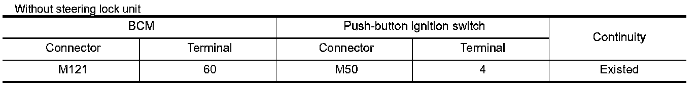2.Check continuity between BCM harness connector and push-button ignition switch harness connector.