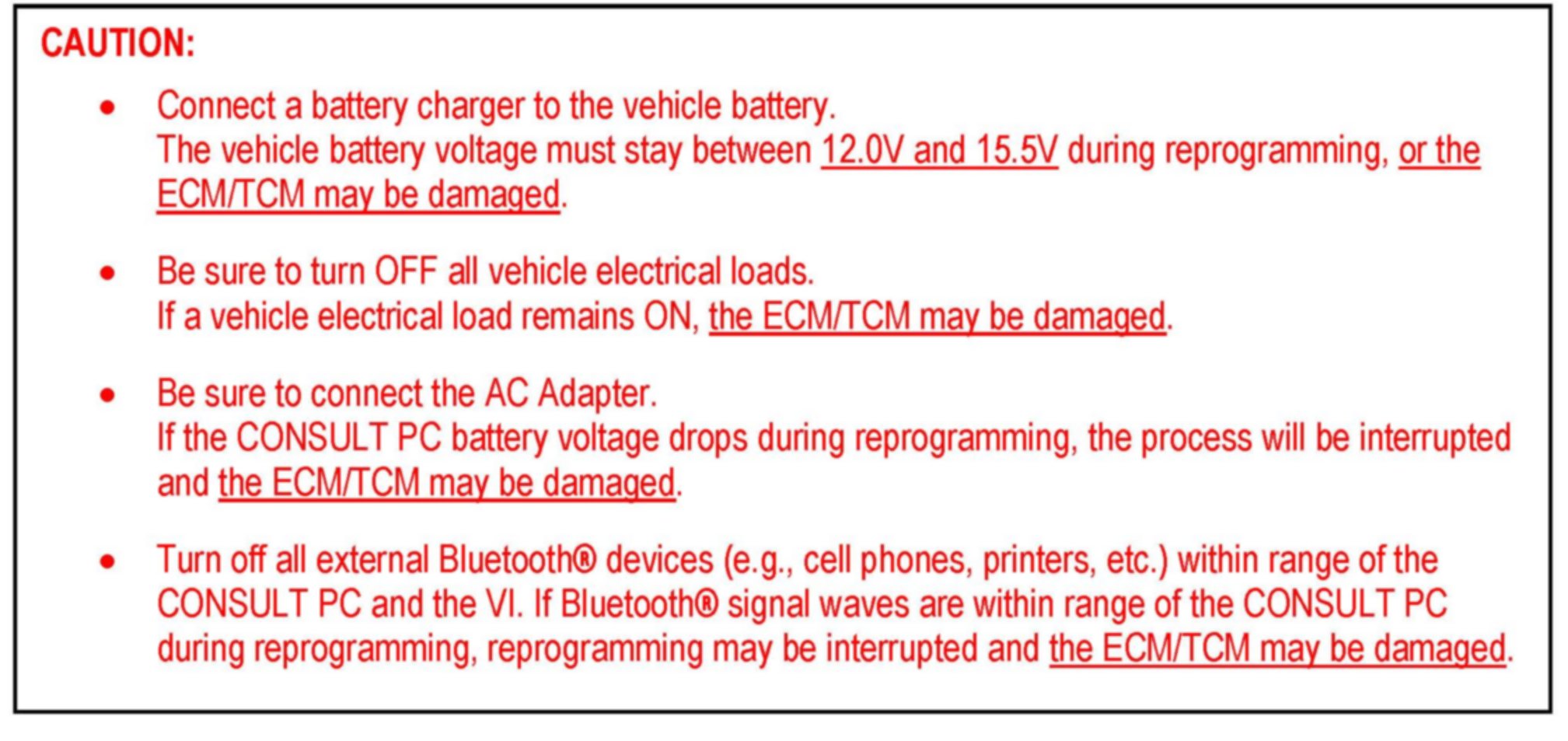 ^ This procedure will require reprogramming of the ECM and TCM; which means most steps in this procedure will need to be done twice.^ Most instructions for reprogramming with CONSULT-III plus (C-III plus) are displayed on the CONSULT PC screen.
