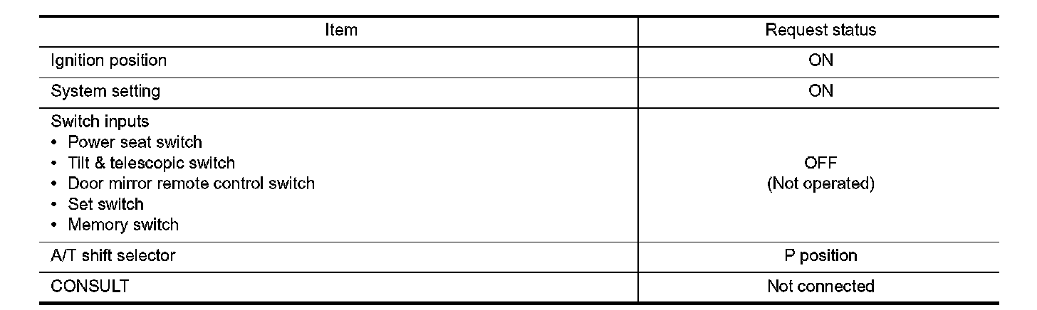 Satisfy all of the following items. The seat synchronization function is not performed if these items are not satisfied.