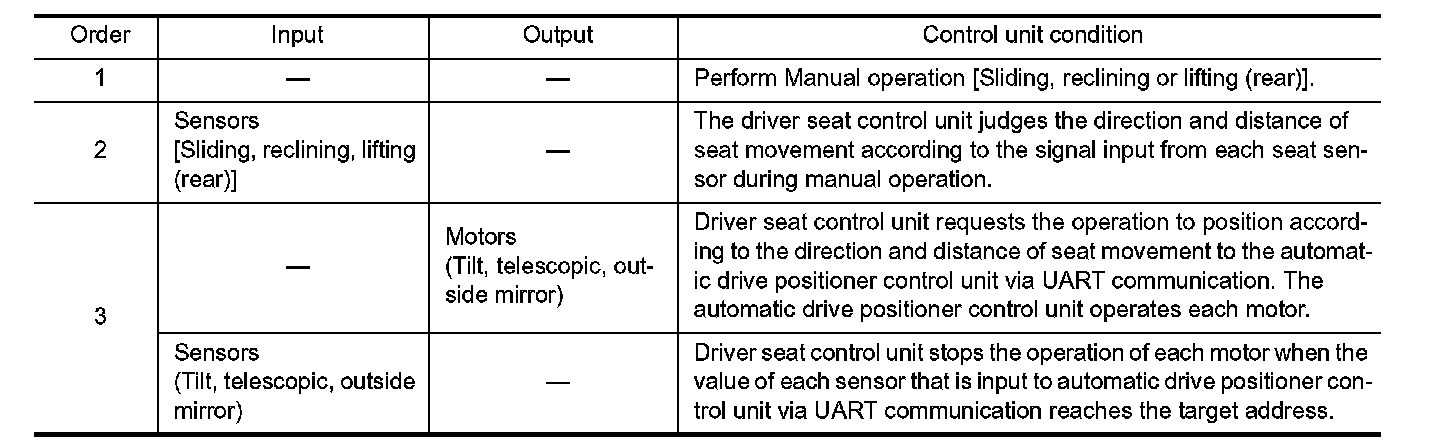 - The seat synchronization function will not operate if seat adjusting value is more than limit value.