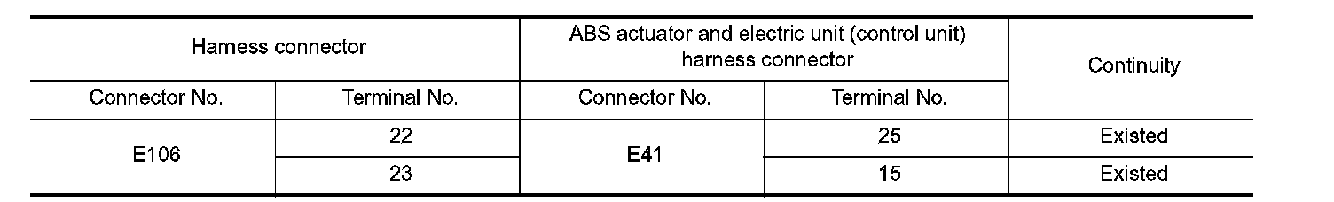 NO- Repair the main line between the harness connector E106 and the ABS actuator and electric unit (control unit).